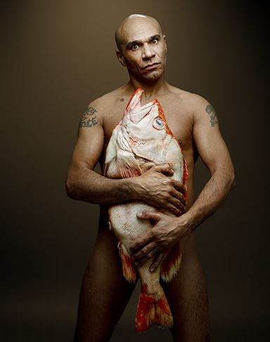 L’actrice franco-portugaise Barbara Cabrita se cache derrière un hareng.