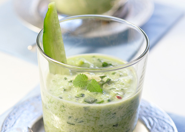 Légume d’été par excellence, le concombre marie sa saveur délicate à l’aneth pour un gaspacho très désaltérant, à servir bien froid.