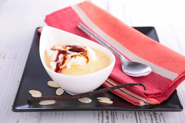 Comme la crème anglaise se fait avec des jaunes d’oeufs, vous pouvez déguster votre île flottante avec un coulis de fraise, de framboise, de pêche ou de fruits de la passion ! À vous d’innover !