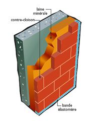 - avec une contre-cloison maçonnée désolidarisée en brique, carreaux de plâtre ou blocs de béton cellulaire ;
