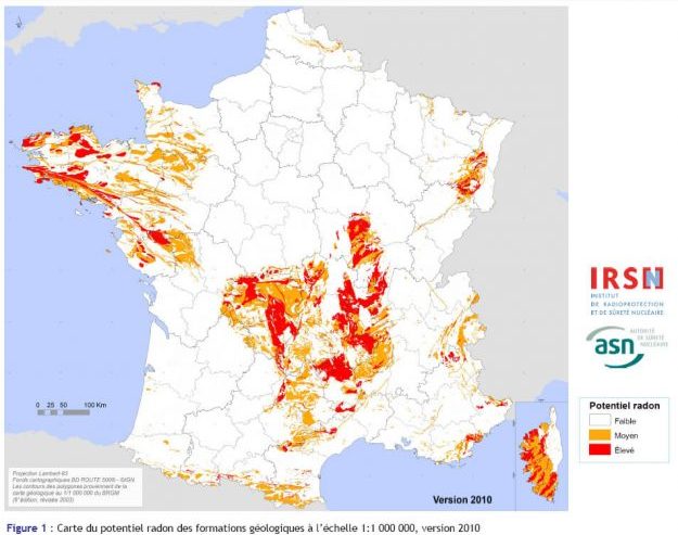 Rappel : il faut savoir qu’à l’air libre, la quantité de radon gazeux est minime et inoffensive, ce n’est que confiné qu’il devient dangereux à long terme.