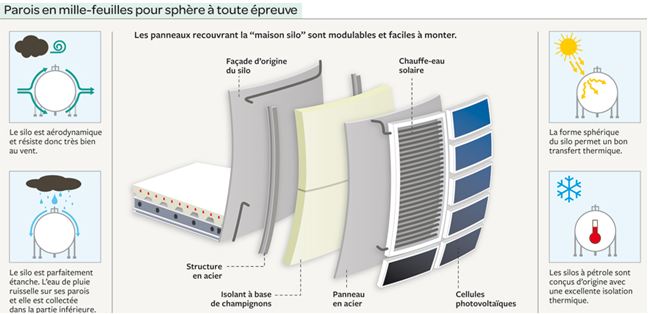 Excellente remarque Sonia. Heureusement, les concepteurs de ces silos-habitat nous disent que la dépollution doit être totale et qu’il ne doit subsister aucune émanation due au stockage antérieur du pétrole. Heureusement, sinon …