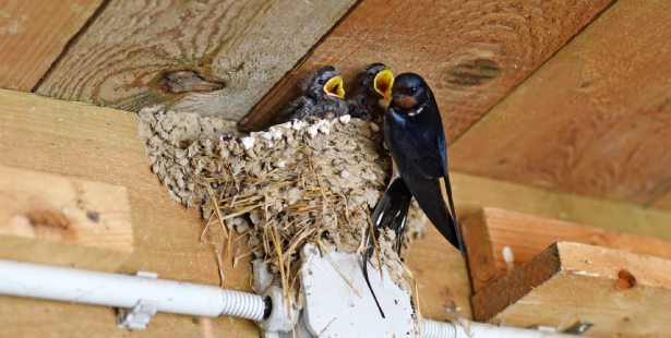 Avoir un nid d’hirondelle peut causer quelques nuisances, cela ne fait aucun doute : bruit, déjections… et des hirondelles qui, pour protéger les petits, attaquent lorsqu’on s’approche un peu trop. Mais ce n’est pas une raison suffisante pour les toucher : la loi française interdit en effet de détruire les nids des hirondelles, quelle que soit la période de l’année.