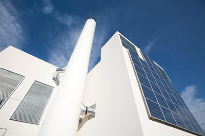 Et la démarche ne s’arrête pas là : le pôle Energie qui alimente le site principal est alimenté par une chaufferie au bois. Ceci permet de chauffer 8 bâtiments, soit 52 000 m2. Et les 3200 tonnes de bois consommées font économiser quelques 1438 tonnes d’émissions de CO2 par an par rapport au gaz naturel.
