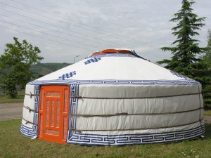 Pour rappel, la yourte est un habitat traditionnel (tente à ossature démontable en bois recouvert de feutre) de nombreux nomades vivant en Asie centrale, notamment les mongols et turkmènes.