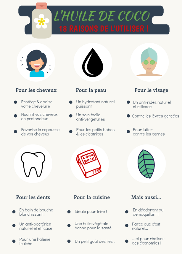 On utilisera de préférence une huile de coco bio, étant donné qu’elle est utilisée pour pénétrer la peau, la bouche ou même les cheveux.