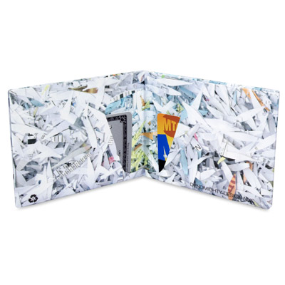 Composé de milliers de longues fibres de plastiques, qui donnent une surface fine et légère résistante à l’eau. Conçu sans couture pour une meilleure résistance, ce porte-feuille est réalisé avec 25 % de papier recyclé. Il s’assouplira avec le temps mais ne se déchirera pas. (15 €)