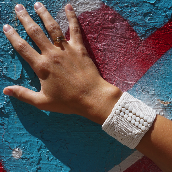 Fabriqué à partir de perles de verre blanches et de matériaux recyclés, il est fait main par une femme massaï de Tanzanie. Il conjugue savoir-faire traditionnel et inspiration contemporaine pour un bijou intemporel qui viendra orné joliment le poignet de votre maman.