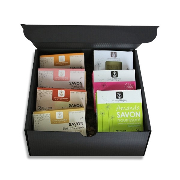 La boutique consoGlobe vous propose un coffret composé de 7 savons naturels pour une maman délicate