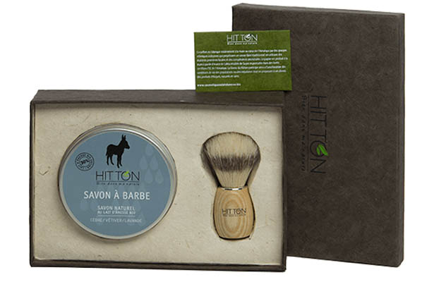 Ce coffret pour un papa chic et coquet contient un savon à barbe de 150 grammes dosé à 30 % de lait d’ânesse bio et un blaireau en bois et fibres naturelles.