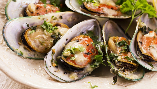 Ouvrez les moules à la vapeur, retirez la coquille supérieure et disposez-les sur un plat. Mélangez chapelure, parmesan, ail haché et persil. Garnissez chaque moule de ce mélange, arrosez d’un filet d’huile d’olive et faites gratiner quelques minutes au four.