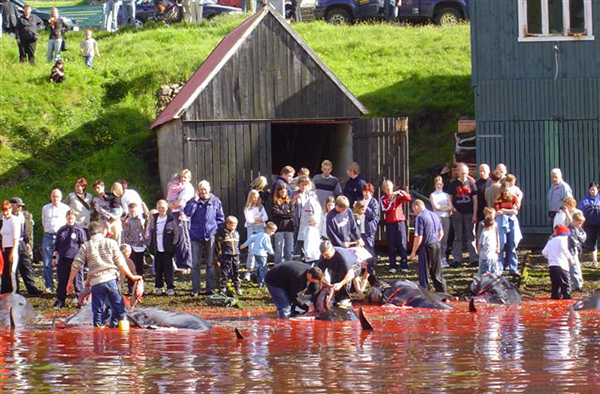 Écœurantes ces fameuses « traditions » qui se pratiquent dans tous les pays en massacrant des animaux. En France nous avons la corrida, les chasse et pêche loisirs (par exemple le déterrage des blaireaux), les combats de coqs, et d’autres turpitudes (la liste est longue). Certes beaucoup d’abrutis aux Féroé et au Japon mais ils sont légion aussi chez nous.