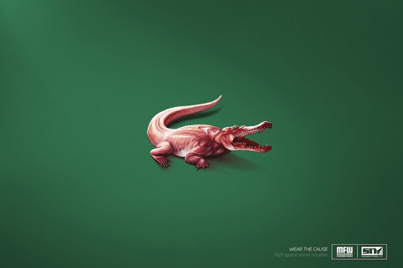 Le célèbre logo de Lacoste a été détourné : le crocodile est écorché pour la cause animale