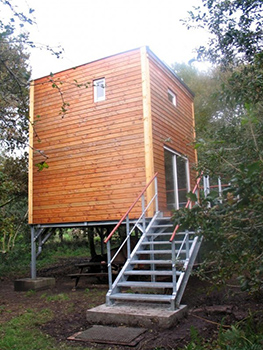 L’idéal pour des jeunes qui ne peuvent en général pas accéder à la propriété, selon les concepteurs. Pas besoin de permis de construire, en plus : la maison est sur pilotis donc la surface