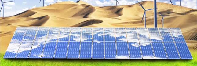 Illustration bannière : Éoliennes et panneaux solaires pourraient faire reverdir le désert- © xujun