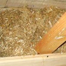 Les fibres de chanvre (ici mélange de chènevotte (20 %) et de fibres courtes (80 %)) sont utiles en vrac pour l’isolation des toitures, combles, planchers sur lambourdes et pour le calfeutrage