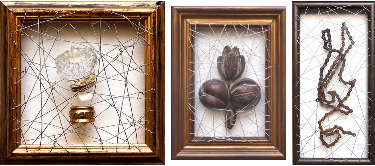 Emma Godesbska, pour son oeuvre Memorabilia : des créations évoquant des souvenirs, avec l’aide d’objets récupérés : vieilles clés, des cheveux, des outils. Ces objets viennent de différents lieux et de différents voyages. »
