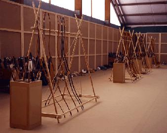 Claude Luzet, professeur et gestionnaire du Kyudojo de Noisiel (Seine-et-Marne) explique « l’ouverture de l’arc se fait sur un seul plan qui ne doit pas bouger. Les hanches, les pieds et les épaules doivent être alignés et former une croix ».