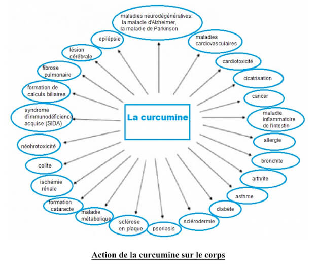 Le faible coût, la sécurité pharmacologique, l’efficacité thérapeutique prouvée et le potentiel de ciblage multiple font de la curcumine un agent prometteur pour la prévention et le traitement de diverses maladies humaines.