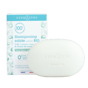 1. Le shampoing solide 3-en-1 bio (cheveux, corps, visage) de Dermasens, au format idéal pour la valise
