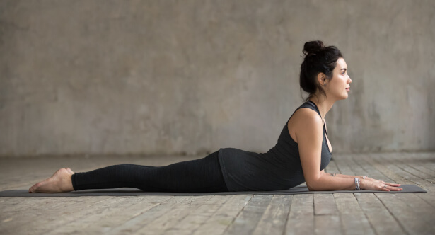 Plus exigeante, la posture du cobra a le même point de départ. Toutefois, ce sont les mains qui sont placées au sol, bras tendus. La posture du cobra permet un étirement des abdos en plus de prévenir les douleurs lombaires.