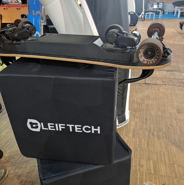 Il nous présente au salon Autonomy 2016, la freeboard électrique de la marque Leiftech. Naïm, spécialiste de la freeboard et freeboard électrique, nous explique que la sensation est similaire au snowboard, ce qui apporte l’avantage de pouvoir s’entraîner, même en été !