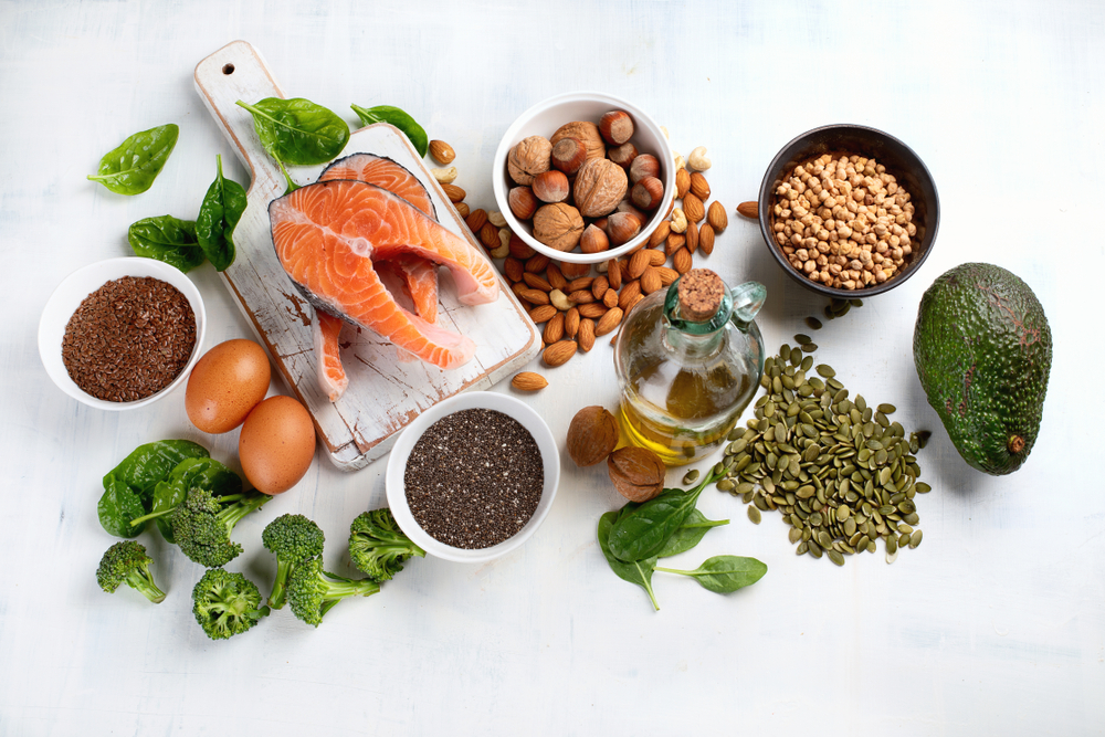 Aliments à favoriser pour faire le plein d’oméga-3 : les poissons gras, comme le saumon, le maquereau et les sardines, les graines de lin, les graines de chia et les noix, qui sont autant de bonnes sources d’oméga-3 !