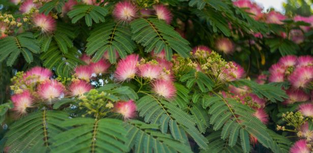 L’albizia, aussi appelé l’arbre à soie, est un arbre d’ornement à croissance rapide qui fournit une ombre légère et agréable. Il est également apprécié pour ses fleurs estivales aux couleurs vives qui attirent les pollinisateurs.