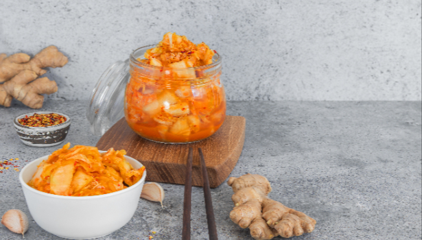 Le kimchi est un plat traditionnel coréen à base de légumes fermentés, principalement du chou napa, assaisonné d’épices, d’ail et de pâte de piment. Ce processus de fermentation lui confère une saveur unique et acidulée, tout en étant riche en probiotiques et vitamines. Servi en accompagnement, il est apprécié pour sa polyvalence et a gagné en popularité dans le monde entier grâce aux série coréennes.