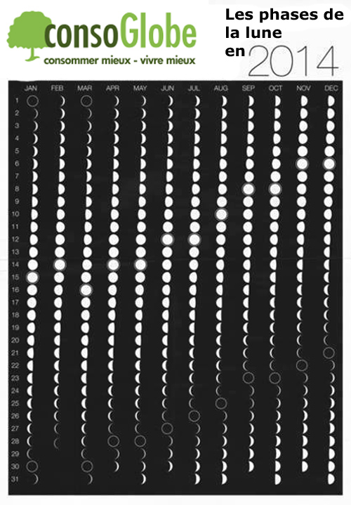 Voici un document à mettre de coté, surtout si vous êtes jardinier ou si vous travaillez dans la nature. Il s’agit du calendrier des phases de la lune en 2014.