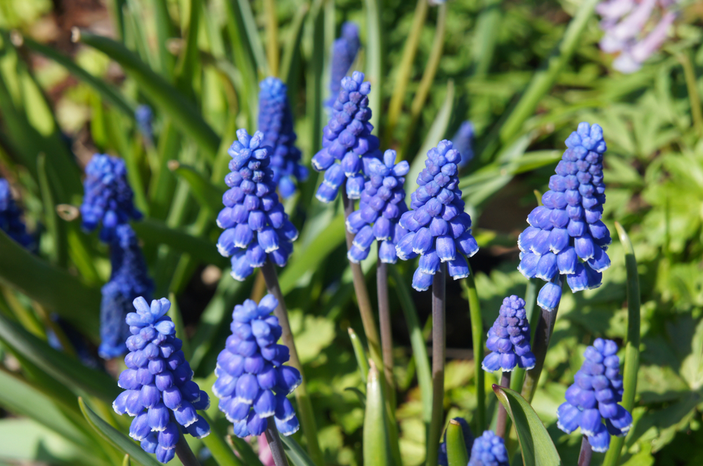 Les clochettes bleues en forme de grappe des muscaris fleurissent dès l’arrivée du printemps. Parmi les espèces les plus communes au jardin, le Muscari armeniacum, aussi connu sous le nom de jacinthe à grappes. Cette plante à bulbes est facile à cultiver !