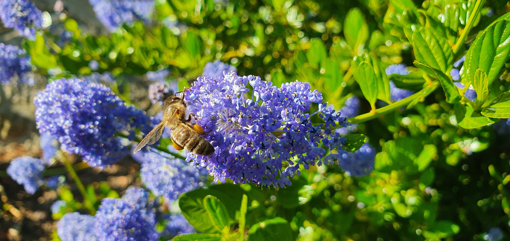 Les céanothes sont des arbustes mellifères appréciés pour leur floraison abondante de fleurs bleues ou rose pâle. Ils peuvent atteindre jusqu’à 4 mètres de hauteur !