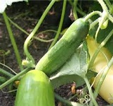 Plante (Ht : 70 cm), aux fruits allongés (longueur : 25-30 cm, diamètre de 6-8 cm. 280 g).