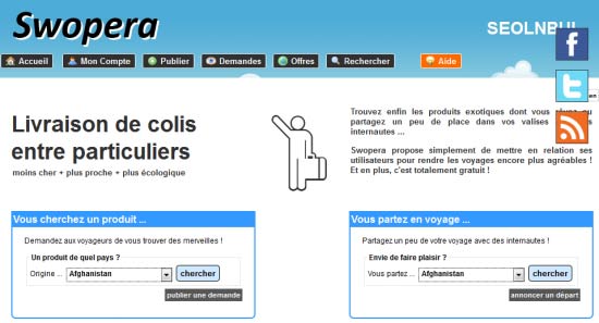 - Swopera : « livraison de colis entre gentils internautes ». Soit un service web français complètement gratuit, à l’interface agréable à utiliser.