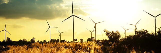 Enfin l’avènement des énergies renouvelables ? – http://www.shutterstock.com/fr/pic-161515241/stock-photo-eco-power-wind-turbines-at-sunset.html