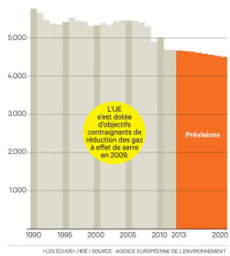 Le second «paquet-énergie-climat pour 2030» divulgué par la Commission le 22 janvier 2014 pose les contours de la position de l’UE sur l’énergie et mesure ses ambitions. Depuis 1990, l’UE, en se fixant des objectifs contraignants, a réussi à baisser de 18 % ses émissions de CO2, de manière trompeuse en 2011 remarquent les experts.