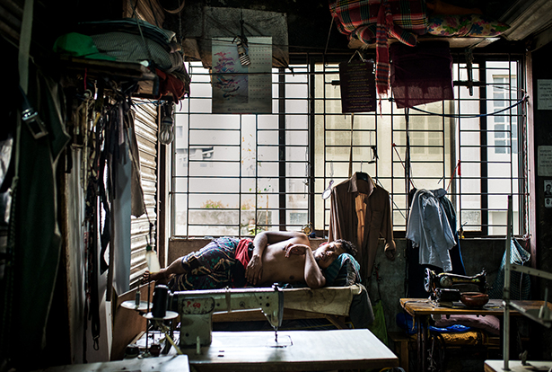Pays majoritairement musulman, le vendredi au Bangladesh est un jour de repos. Les tailleurs qui viennent essentiellement des campagnes restent sur leur lieu de travail.