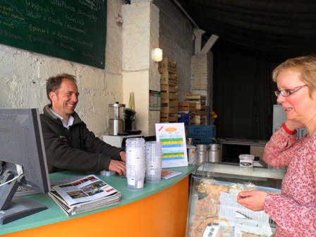 Il a découvert la Maison de la Soupe après avoir goûté un produit chez sa belle-mère. Aujourd’hui, c’est la seconde fois en trois jours qu’il vient s’approvisionner, pour goûter, mais aussi pour faire goûter les produits à son entourage.