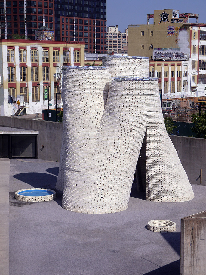 La « tour champignon », c’est son nom, a ainsi été installée dans la cour du MoMA PS1, une fondation pour l’art contemporain.