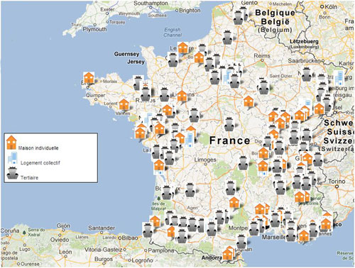 Même si la labellisation n’est pas encore mise en place (elle le sera dans le courant de l’année), il existe tout de même environ 200 bâtiments en France à énergie positive appartenant au secteur public ou privé. Ci-dessous, la carte représentant les opérations avec le détail des maisons individuelles, logements collectifs et bâtiments du tertiaire.