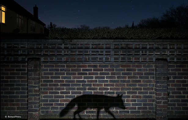 La nuit, le photographe Richard Peter, éclaire son jardin, comme nombreux de ses voisins. Il aperçoit un renard et cela lui donne l’idée de capturer ce moment.
