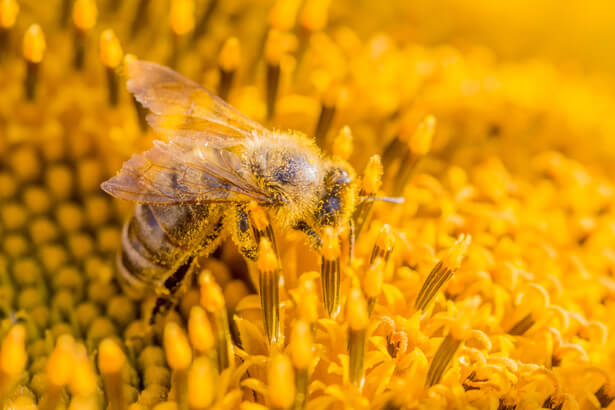 Illustration bannière : Le pollen est la substance la plus couramment attrapée dans leurs poils par les abeilles, mais on retrouve aussi des débris végétaux, de la cire et des morceaux d’autres insectes et… des microplastiques ! – © Dave Massey