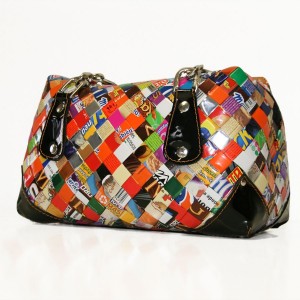 Retour en enfance avec les sacs Nahui Ollin d’Olga Abadi. Cette créatrice américaine s’est inspirée de la technique de tressage des Mayas pour proposer des sacs et accessoires utilisant des emballages de bonbon, des imprimés BD etc.