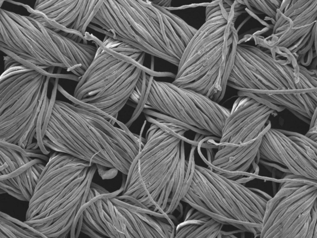 Image agrandie 150.000 fois et montrant le détail des nano-structures qui poussent au coeur d’une pièce de coton. © RMIT