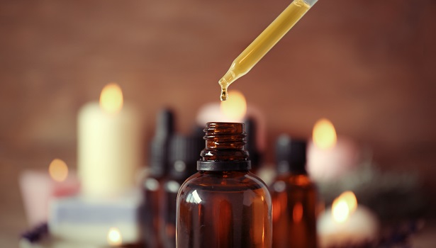 - Versez 20 gouttes d’huile essentielle de niaouli et 10 gouttes d’huile essentielle d’eucalyptus radiata dans 50 mL d’huile de massage végétale (amande douce par exemple).