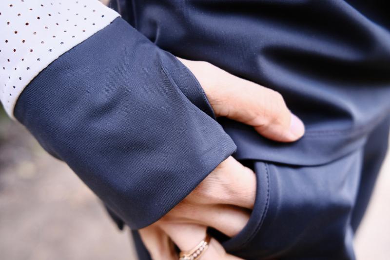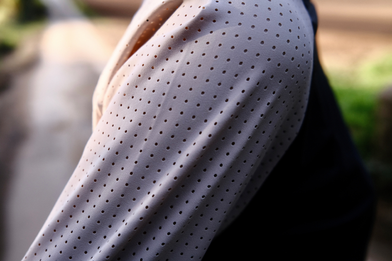 Quant au tee-shirt, sa matière également strech fait réellement office de seconde peau et les manches longues micro-perforées – tout comme une partie du dos – limitent les frottements en permettant aussi une aération optimale.