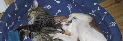 Photo de bannière : chiot terrier entre chatons – © Rita Kochmarjova Shutterstock