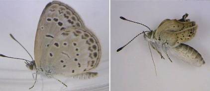 Des chercheurs viennent d’identifier des papillons mutants dans la zone de Fukushima. Les papillons zizeeria maha sont des petits papillons bleus, très courants au Japon. 12 % de ces papillons, encore en état de larve au moment de l’explosion, ont subi une mutation génétique importante : yeux, pattes et antennes déformés, ailes atrophiées….