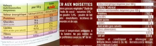 Si l’on compare la valeur nutritionnelle des 2 pâtes à tartiner, on s’aperçoit du léger avantage de la pâte Casino par rapport à Nutella ; elle présente en effet un peu moins d’acides gras saturés, notamment parce qu’elle contient aussi de l’huile de tournesol.