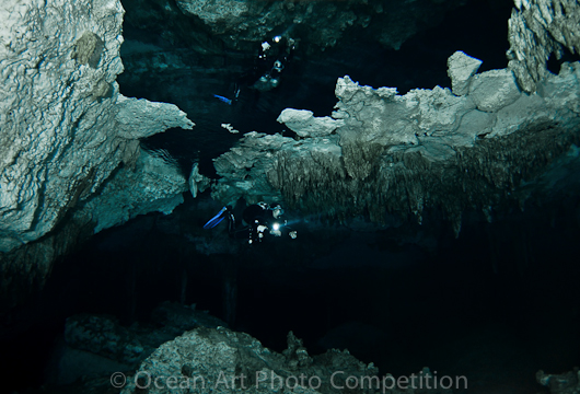 C’est un cliché impressionnant qui remporte le premier prix dans la catégorie « Compact grand angle« , montrant un plongeur au milieu d’une grotte souterraine.